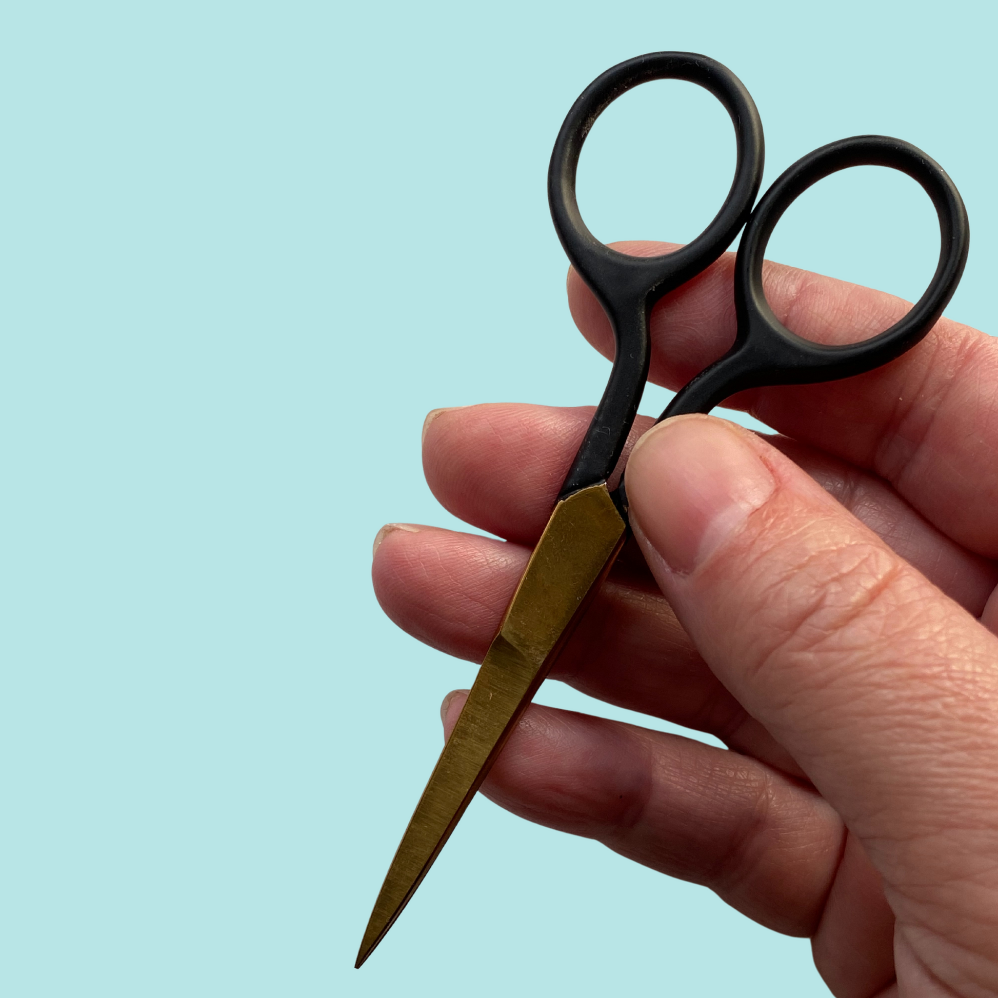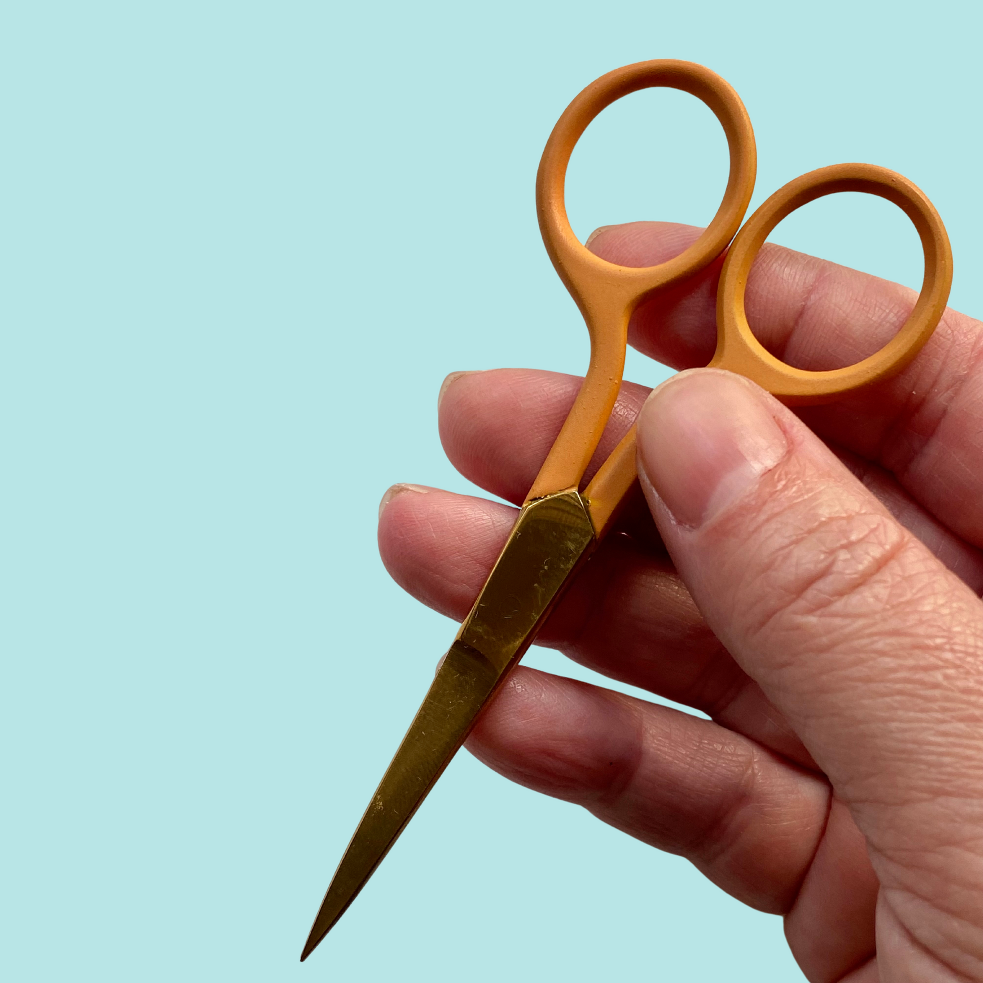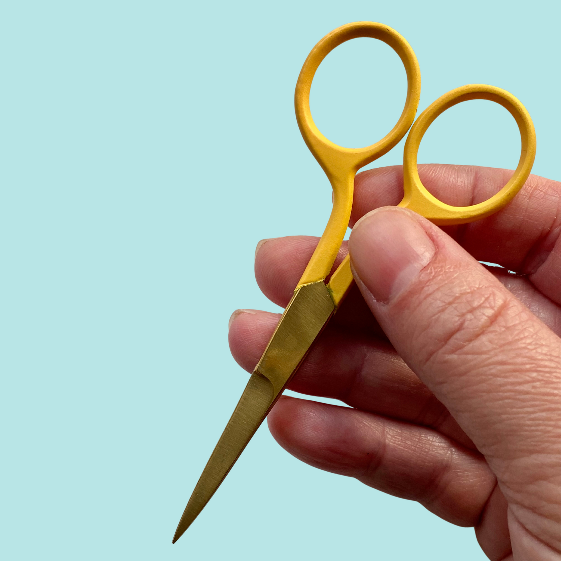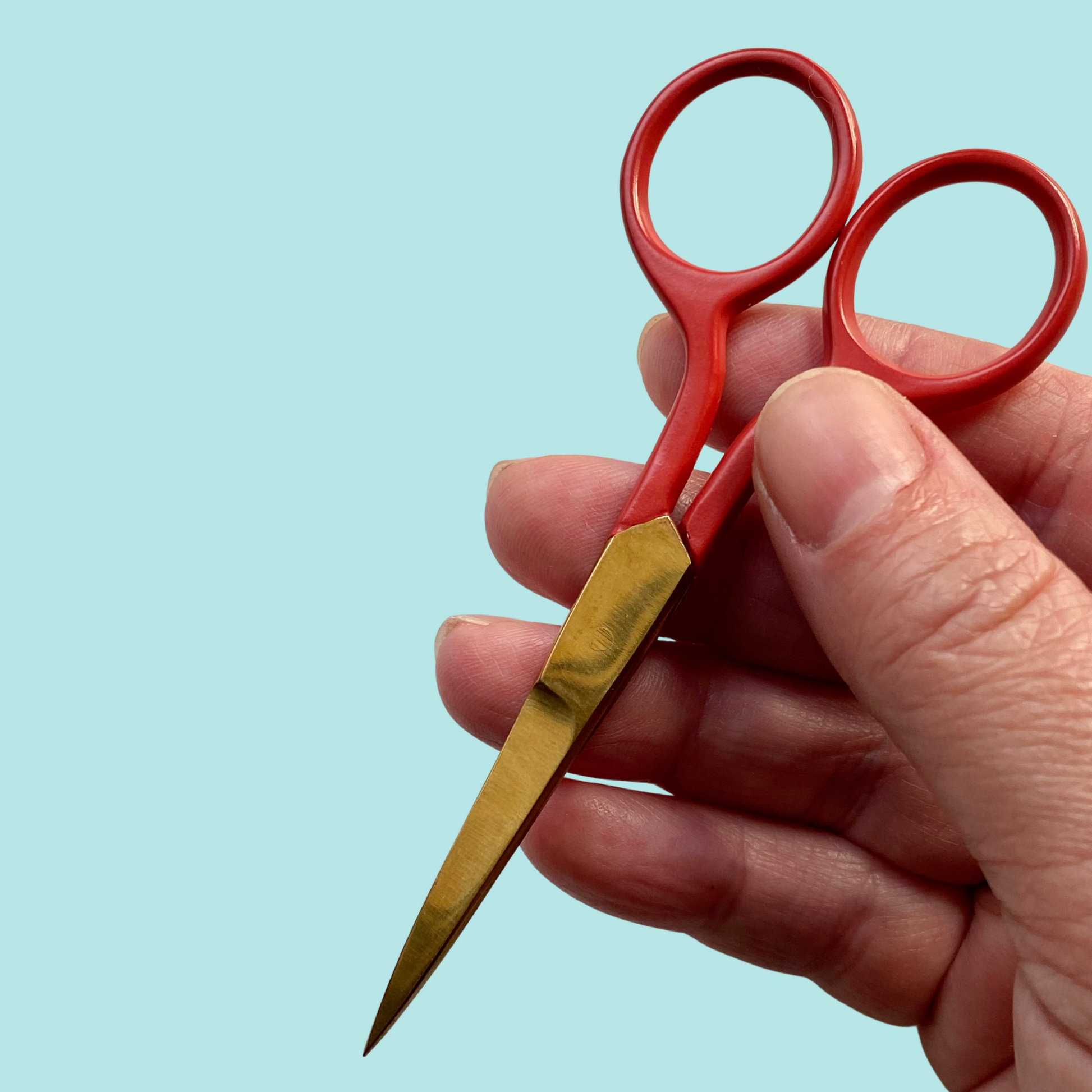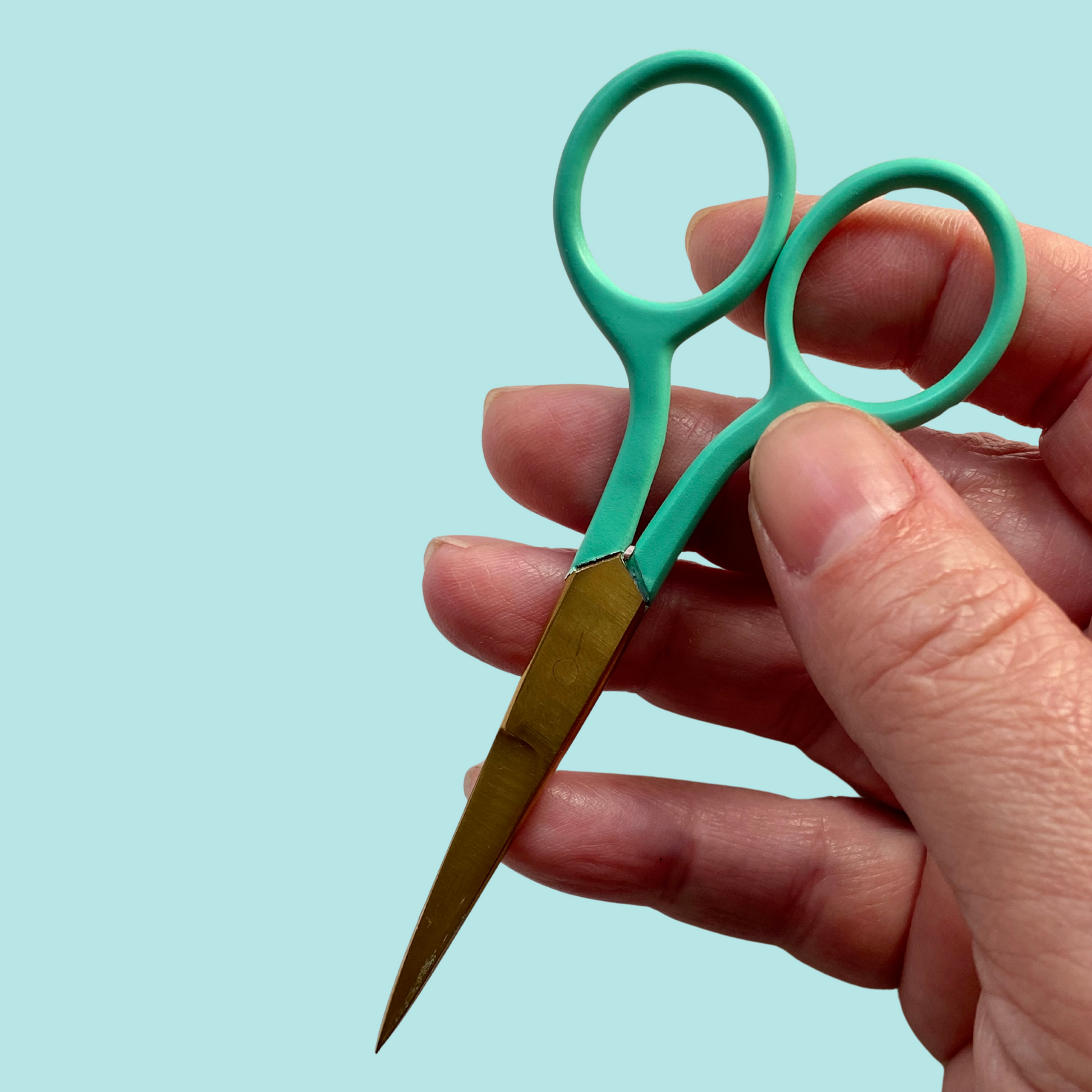 Approximately 4 1/8" in length, these super snazzy, golden blade scissors make snipping a joy.