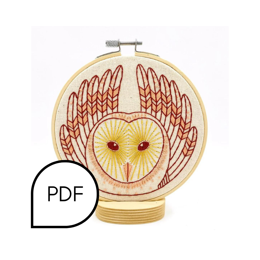 One of 4 unexpectedly colourful owl patterns. Our Barn Owl has a unique tonal palette of 3 bold colours. This pattern features a combination of satin, link, back stitches and french knots. Click here to view the Northern Owls Collection