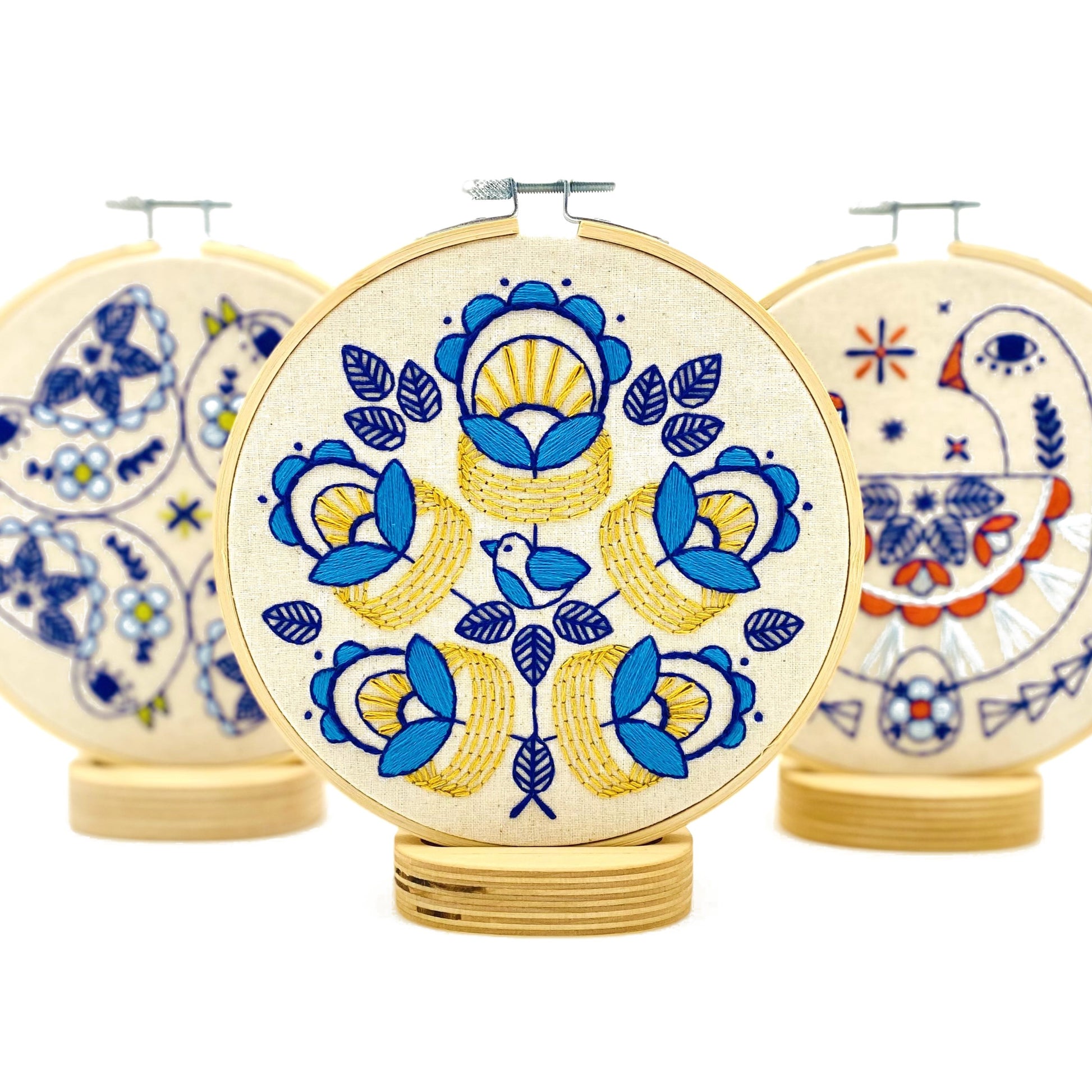 "Five Golden Rings" The fifth in the 12 Days of Christmas song, our Golden Rings pattern is a modern, Scandi folk inspired design. Holiday themed, but still perfect for year-round stitching and displaying. Released as part of the second set of 3 in a 12-pattern series.