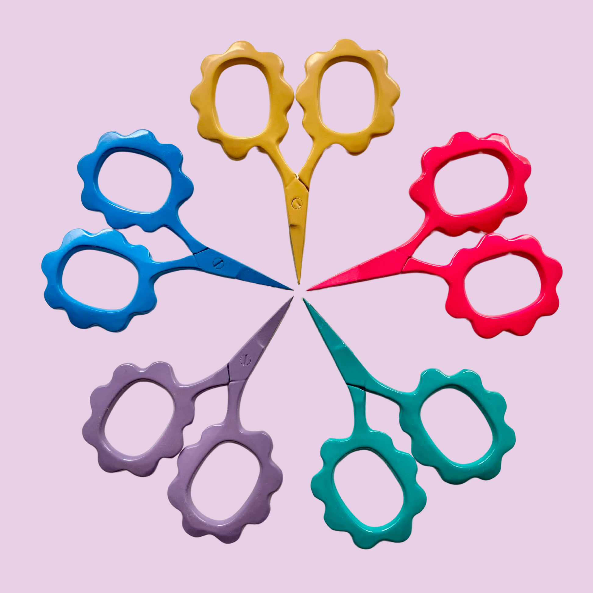 These groovy scissors measure 2.5" in length and will add some retro peace and love to your stitching toolbox.