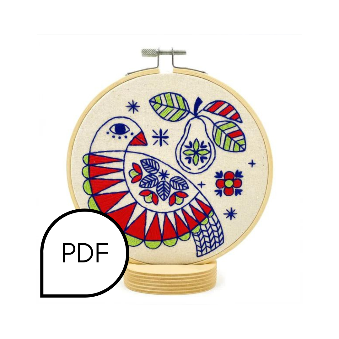"Partridge in a Pear Tree" The first in the 12 Days of Christmas song, our Partridge in a Pear Tree pattern is a modern, Scandi-inspired design. Holiday themed, but still perfectly suitable for year-round stitching and displaying. Released as part of the first set of 3 in a 12 pattern series.