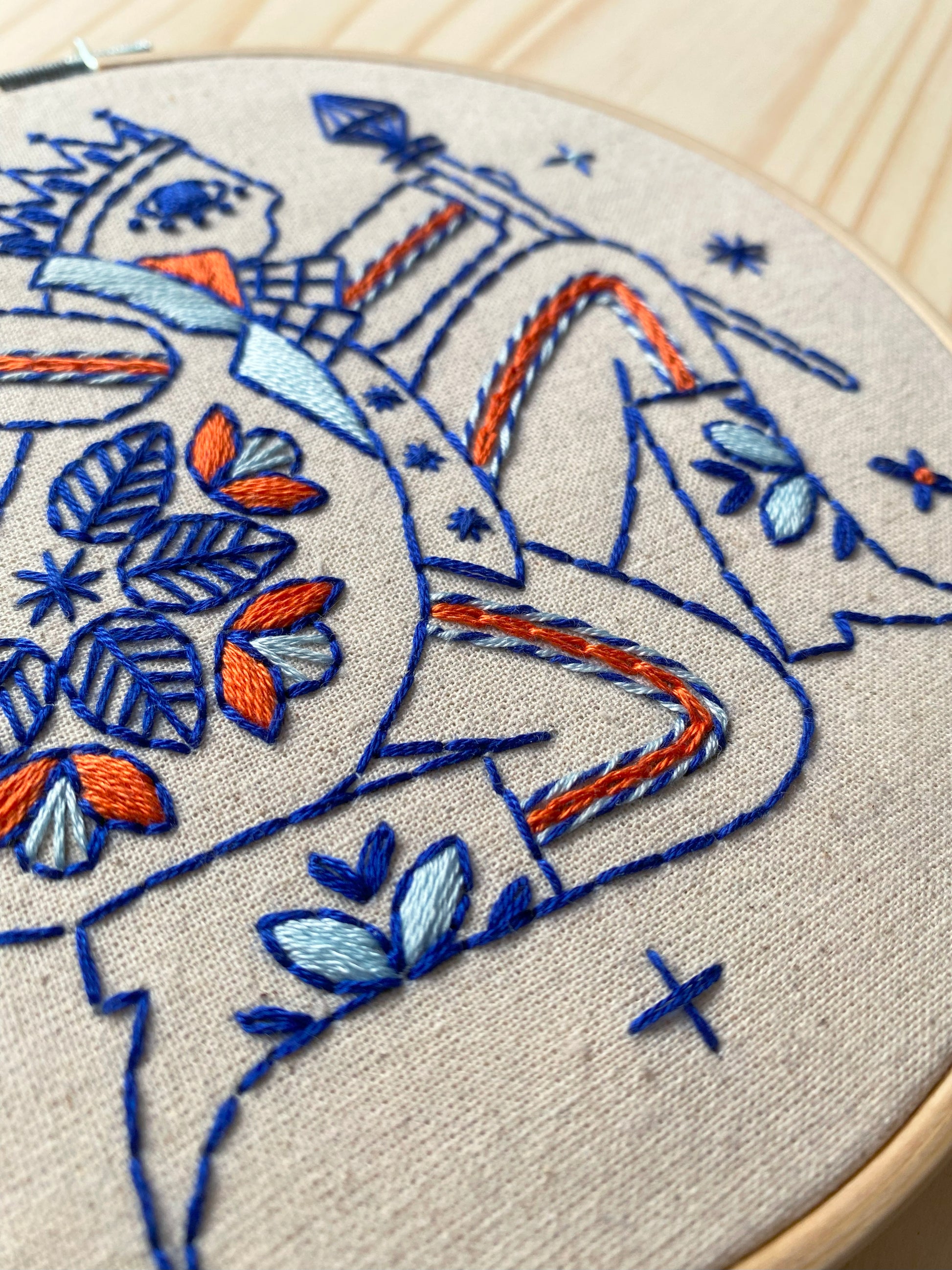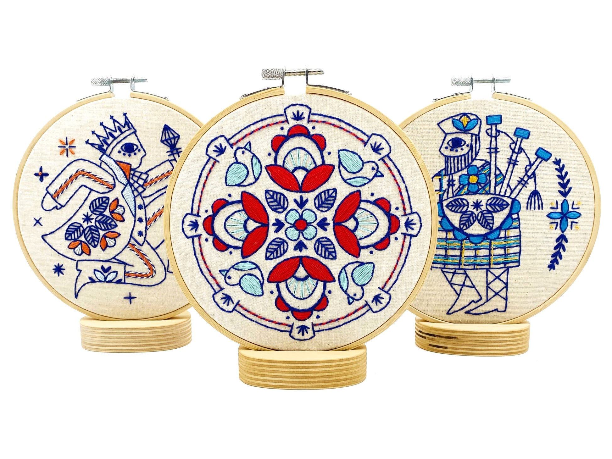 "Lord of Leaping" The tenth in the 12 Days of Christmas song, our Leaping Lord pattern is a modern, Scandi folk inspired design. Holiday themed, but still perfect for year-round stitching and displaying. Released as part of the final set of 3 in a 12-pattern series.