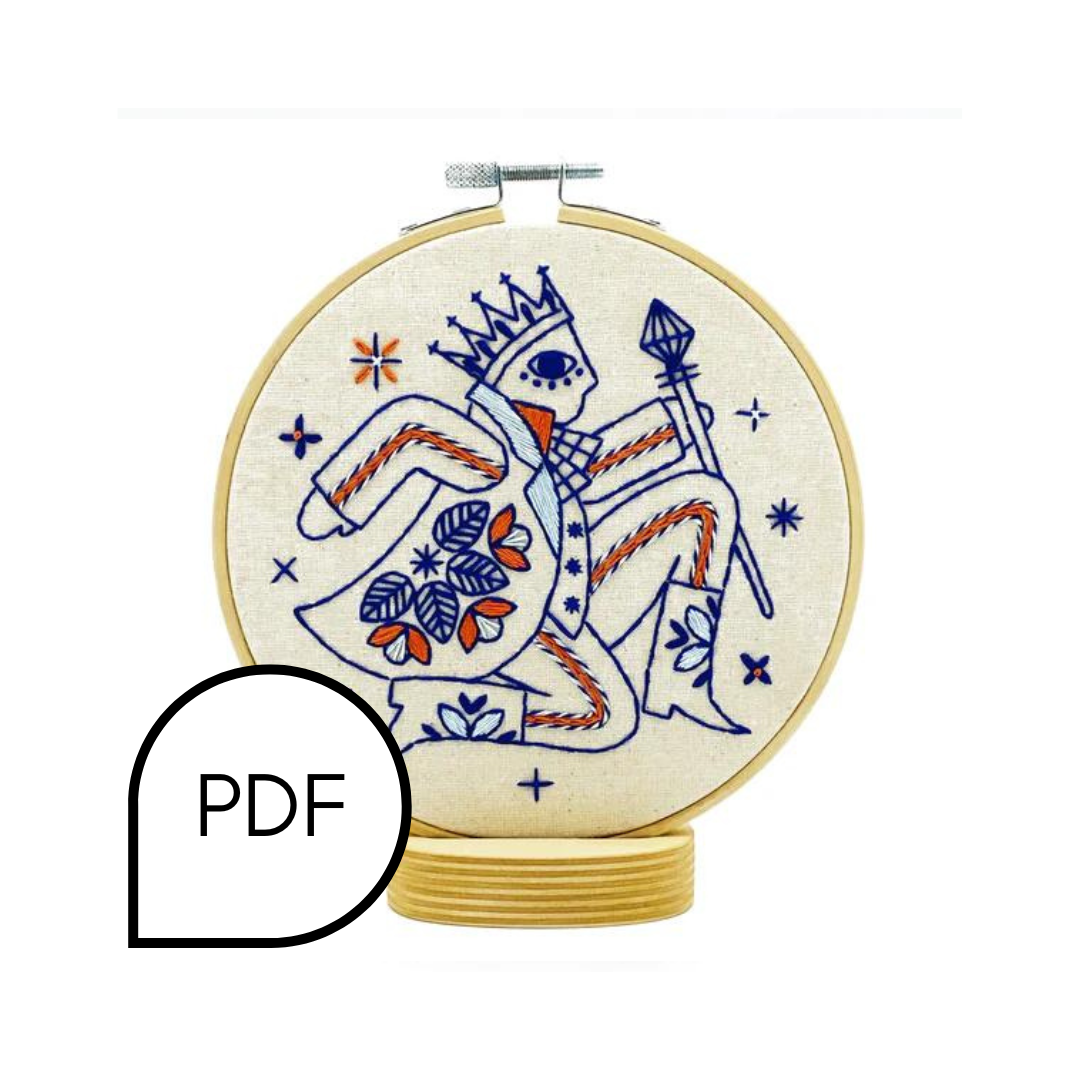 "Lord of Leaping" The tenth in the 12 Days of Christmas song, our Leaping Lord pattern is a modern, Scandi folk inspired design. Holiday themed, but still perfect for year-round stitching and displaying. Released as part of the final set of 3 in a 12-pattern series.