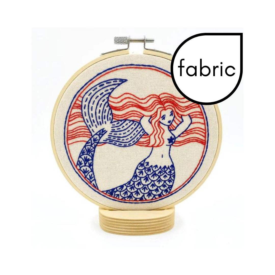 This salty beauty of legend really knows how to let her hair down. Red wavy tendrils that mimic the sea and a tail with textured scales, she's a modern version of a mythological classic made from only introductory embroidery stitches - single stitch, back stitch, and lazy daisy.