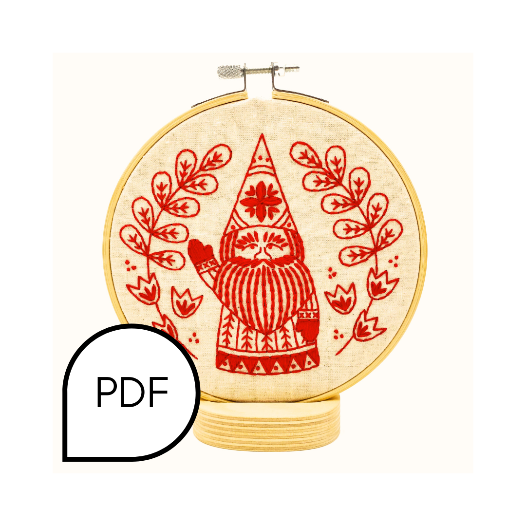 Perfect for the Christmas holiday or year round, our "Jul" gnome is one of a three part collection. Flexible difficulty - keep it simple by using the most basic back stitch throughout, or increase the challenge with chain stitches, French knots, or more as a modern embroidery sampler.