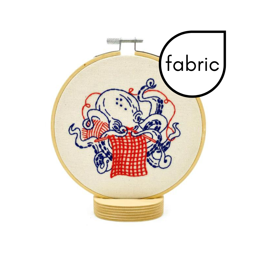 It's an Octo-knitter! Designed by request (multiple requests!), this multi-armed octopus is the envy of every knitter. Created using only basic stitches, this pattern is great for ambitious beginners. Made mostly using single stitches and the backstitch (easy peasy!), its suckers are made using a detached chain (link) and a few French knots are added for added effect. The "knit" pattern is made using a simple backstitch with chain stitches added on top.