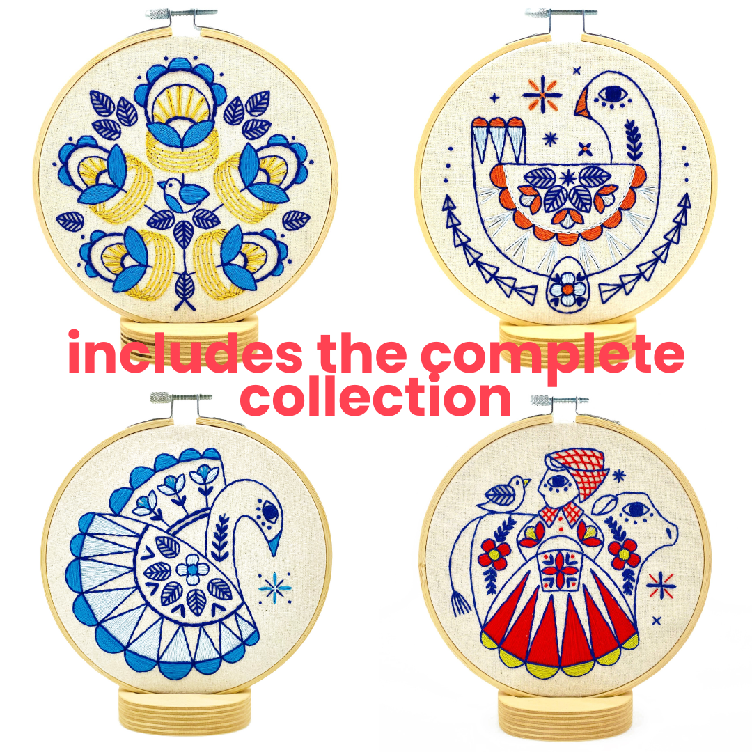 Contains basic instructions in both English and French and printable/traceable pattern sized for a 6"/15cm hoop. Please note that downloads are non-refundable.