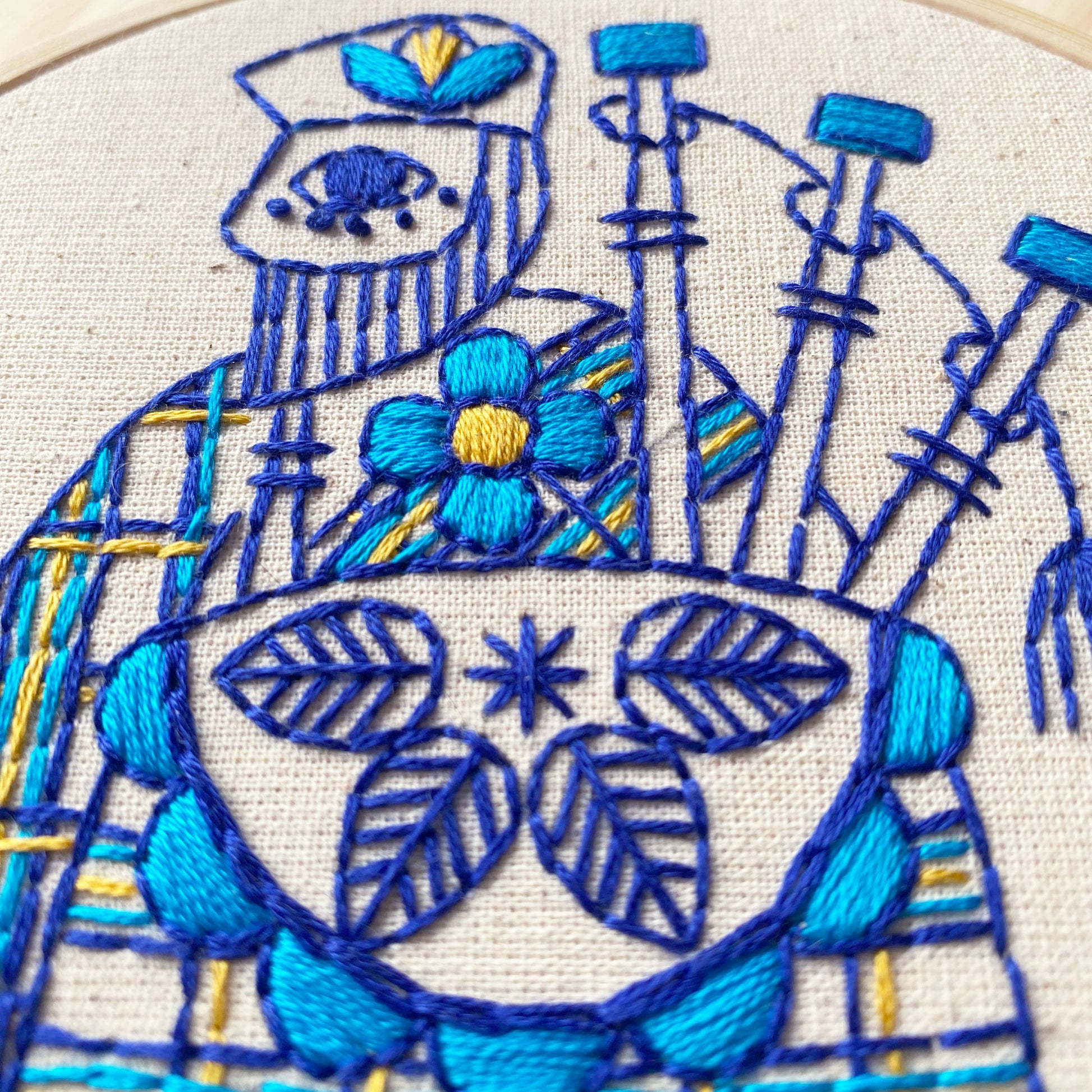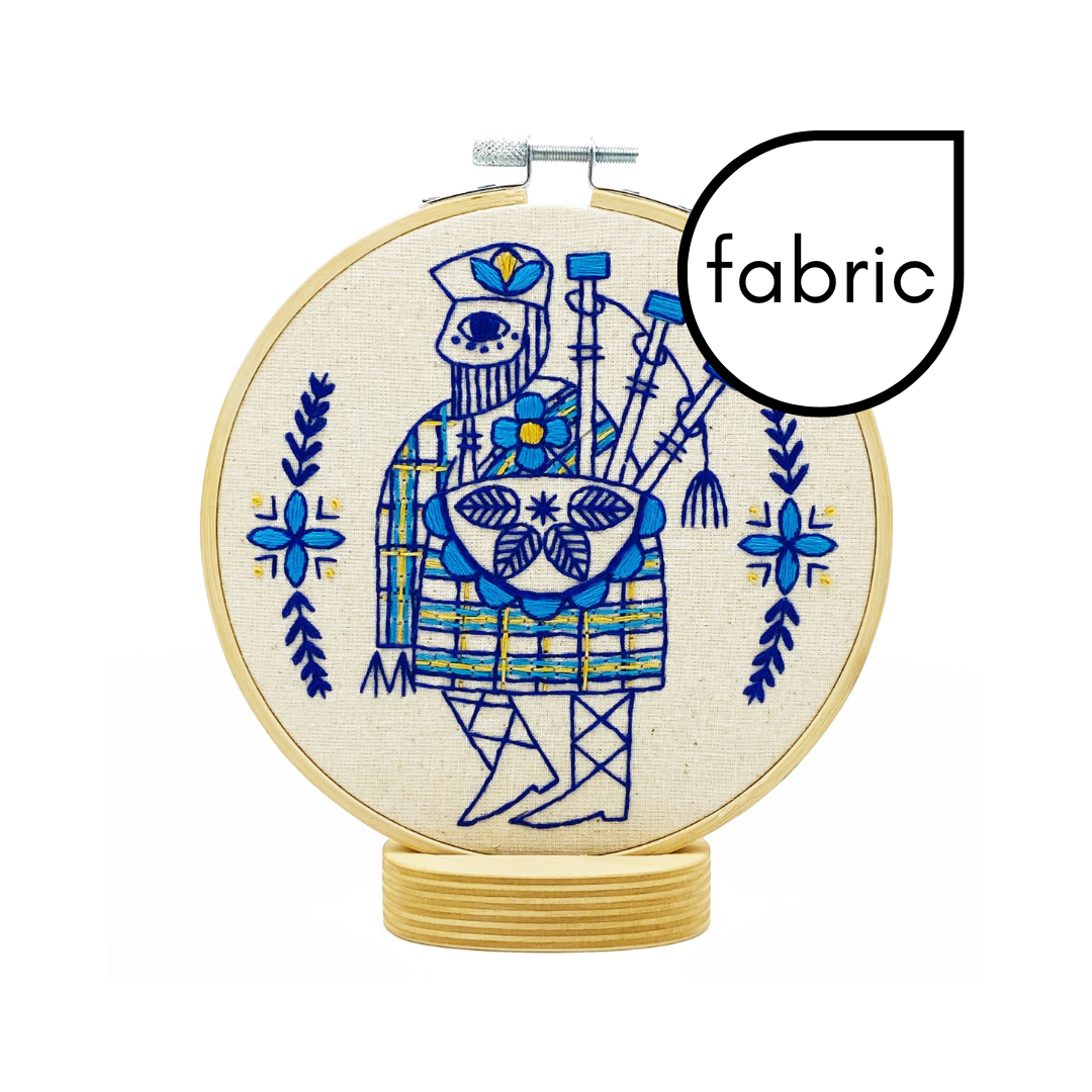 "Bagpiper Piping" The eleventh in the 12 Days of Christmas song, our Bagpiper Piping pattern is a modern, Scandi folk inspired design. Holiday themed, but still perfect for year-round stitching and displaying. Released as part of the final set of 3 in a 12-pattern series.