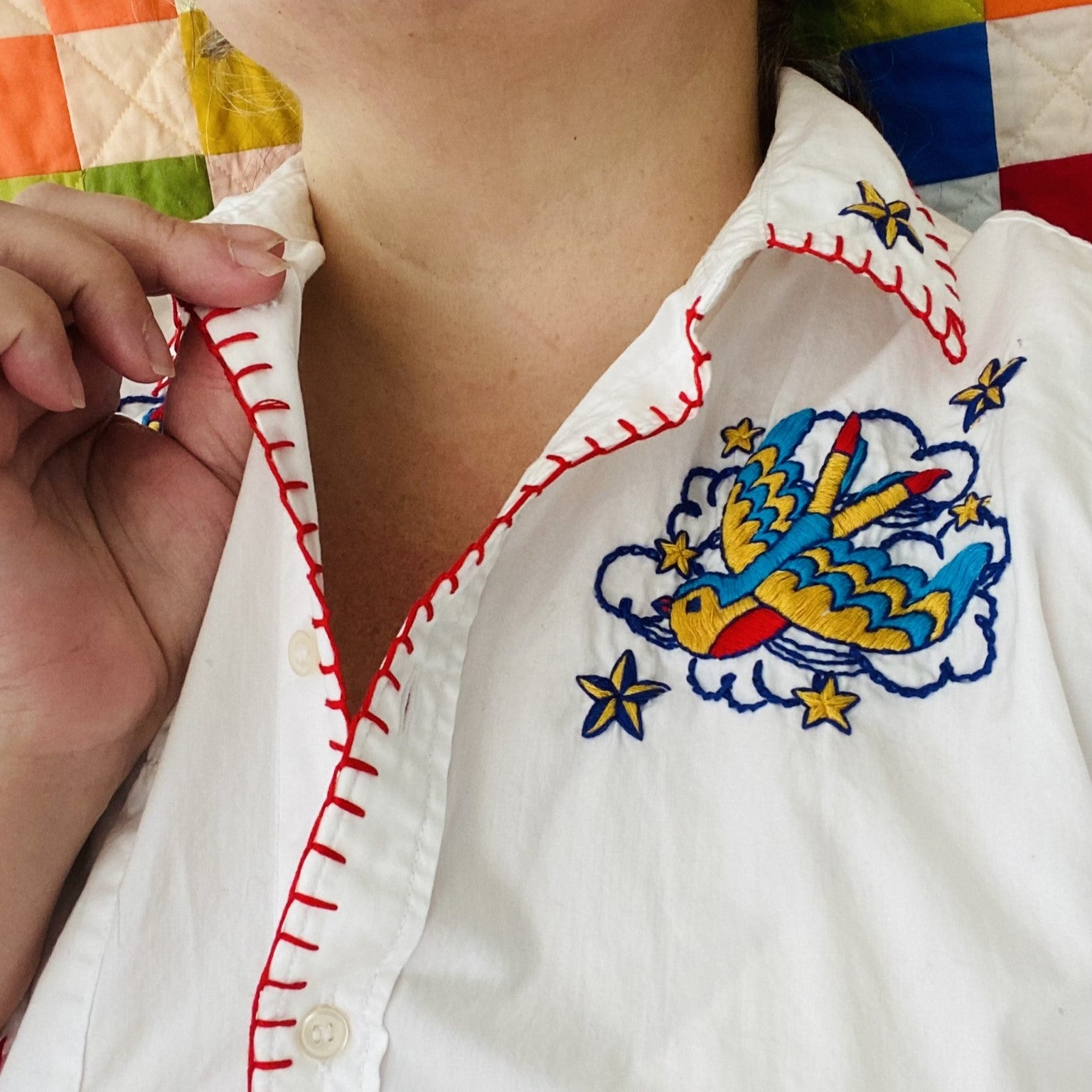 Looking to update or personalize your wardrobe or home textiles with a bit of "WOW"? Try our latest Stick & Stitch designs to create one-of-a-kind fabulousness! Inspired by sailor tattoos: anchor, sparrows, hunky dory banner, stars, and roses.