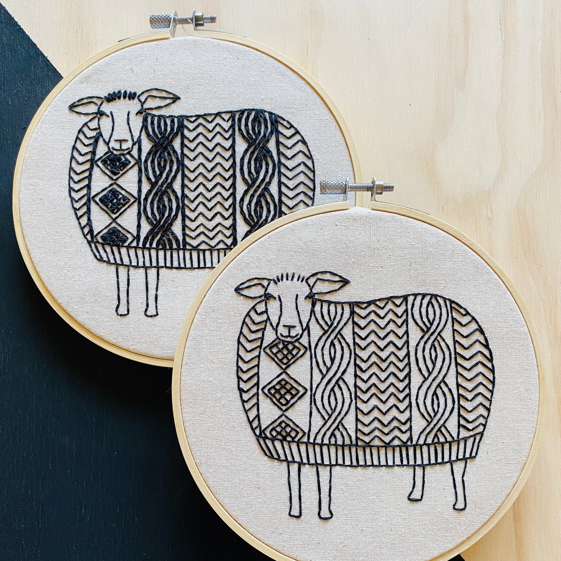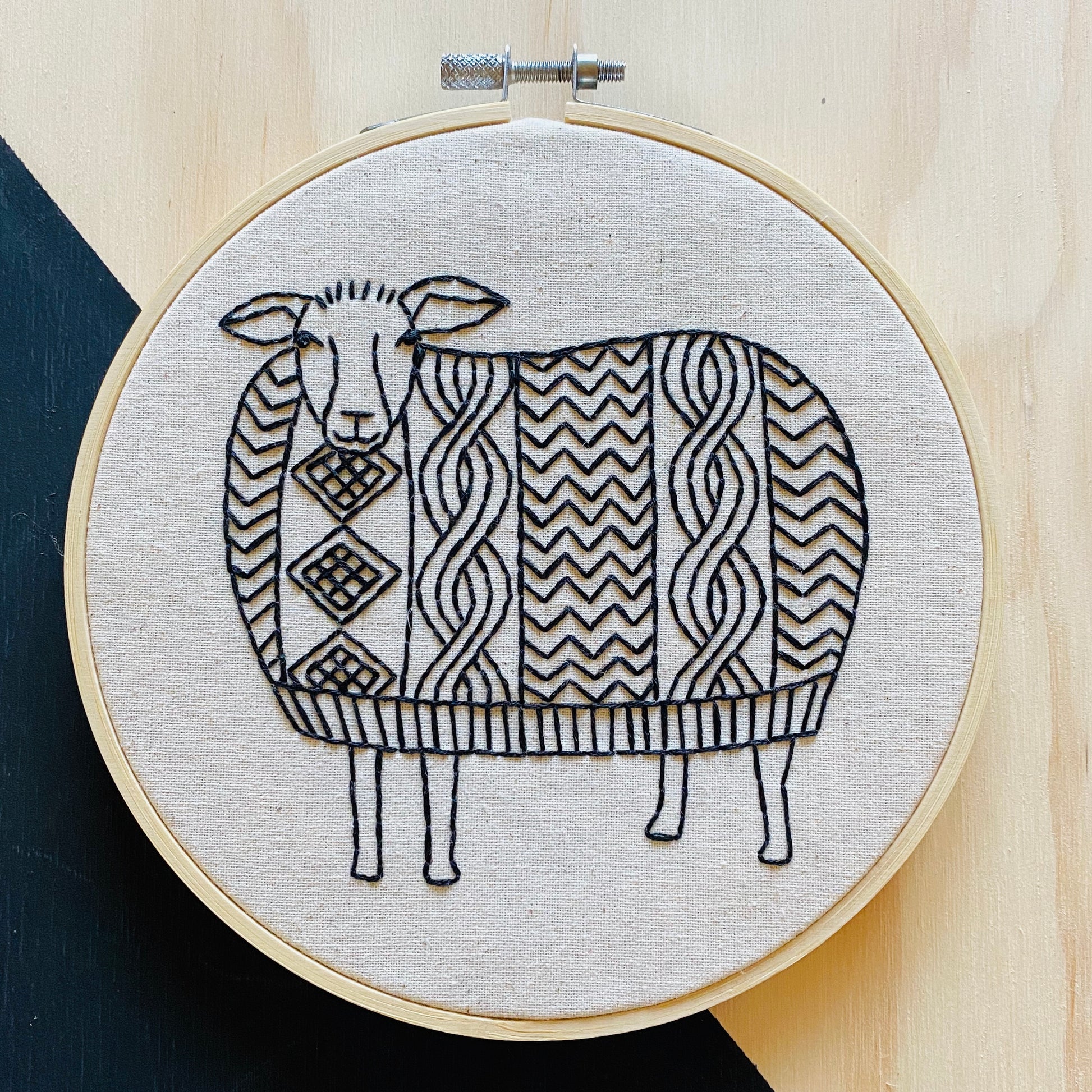 If sheep wore sweaters, they'd be cable knit. ;) Sweater Weather combines the beauty of knitting with the art of embroidery. It's all about texture. You control the difficulty - keep it easy by using the most basic back stitch throughout, or ramp up the challenge with chain stitches, French knots, or more.